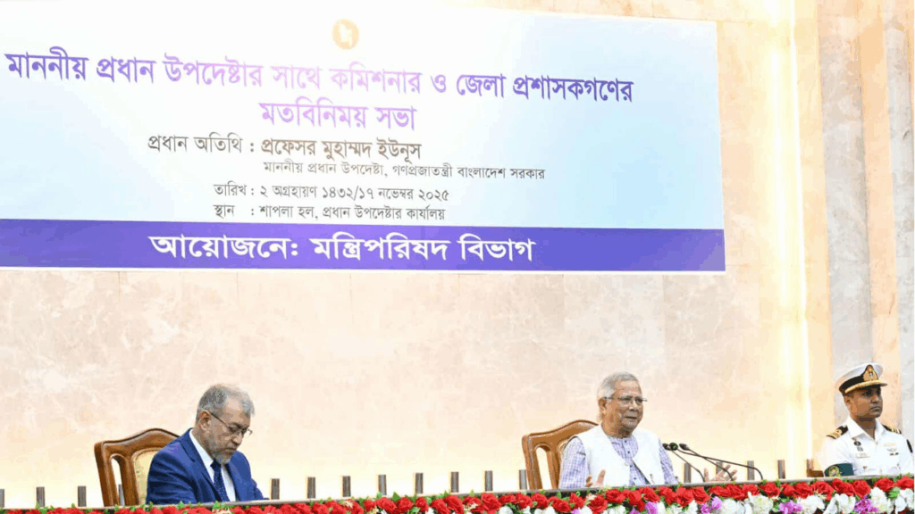আজ (সোমবার) প্রধান উপদেষ্টার কার্যালয়ে সদ্য পদায়নকৃত ৫০ জেলা প্রশাসকসহ ৬৪ জেলার প্রশাসকদের উদ্দেশে দেওয়া বক্তব্যে এসব কথা বলেন প্রধান উপদেষ্টা। আগামী নির্বাচন শুধু পাঁচ বছরের সরকার গঠনের একটি নির্বাচন নয়; বরং গণভোট যুক্ত হওয়ায় এটি আরও তাৎপর্যপূর্ণ নির্বাচন হতে যাচ্ছে উল্লেখ করে প্রধান উপদেষ্টা বলেন, “এটা সম্পূর্ণ ভিন্নধর্মী একটি নির্বাচন। জাতি বহু প্রহসনের নির্বাচন দেখেছে, সেই স্মৃতি ছাপিয়ে যেতে আমাদের ভূমিকা রাখতে হবে।”