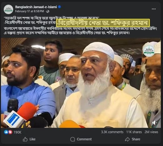 ডা. শফিকুর রহমানের ক্ষেত্রে প্রক্রিয়াটি এখনো অসম্পন্ন রয়ে গেছে। জামায়াতে ইসলামীর সংসদীয় দল তাকে নেতা নির্বাচিত করেছে। তবে আরও যে প্রক্রিয়া রয়েছে, সেগুলো এখনো পুরোপুরি সম্পন্ন হয়নি।